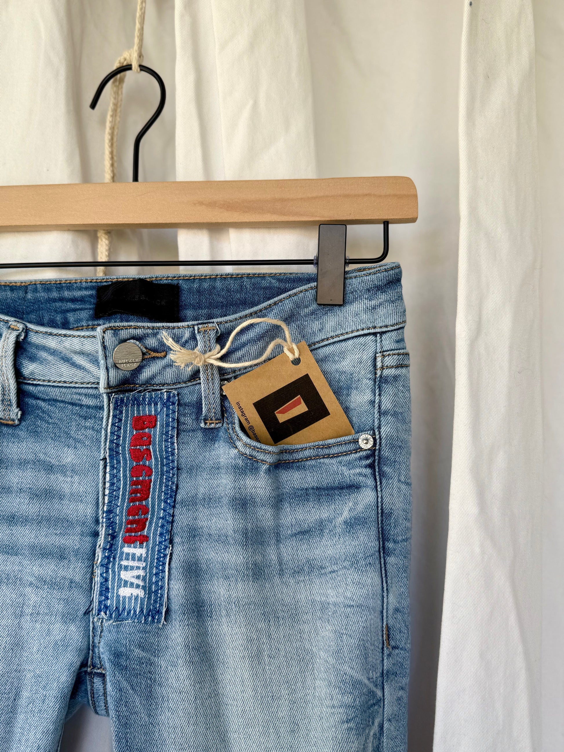 Created using thrifted and reclaimed denim, these jeans embody the spirit of upcycling — transforming pre-loved pieces into sustainable fashion art.