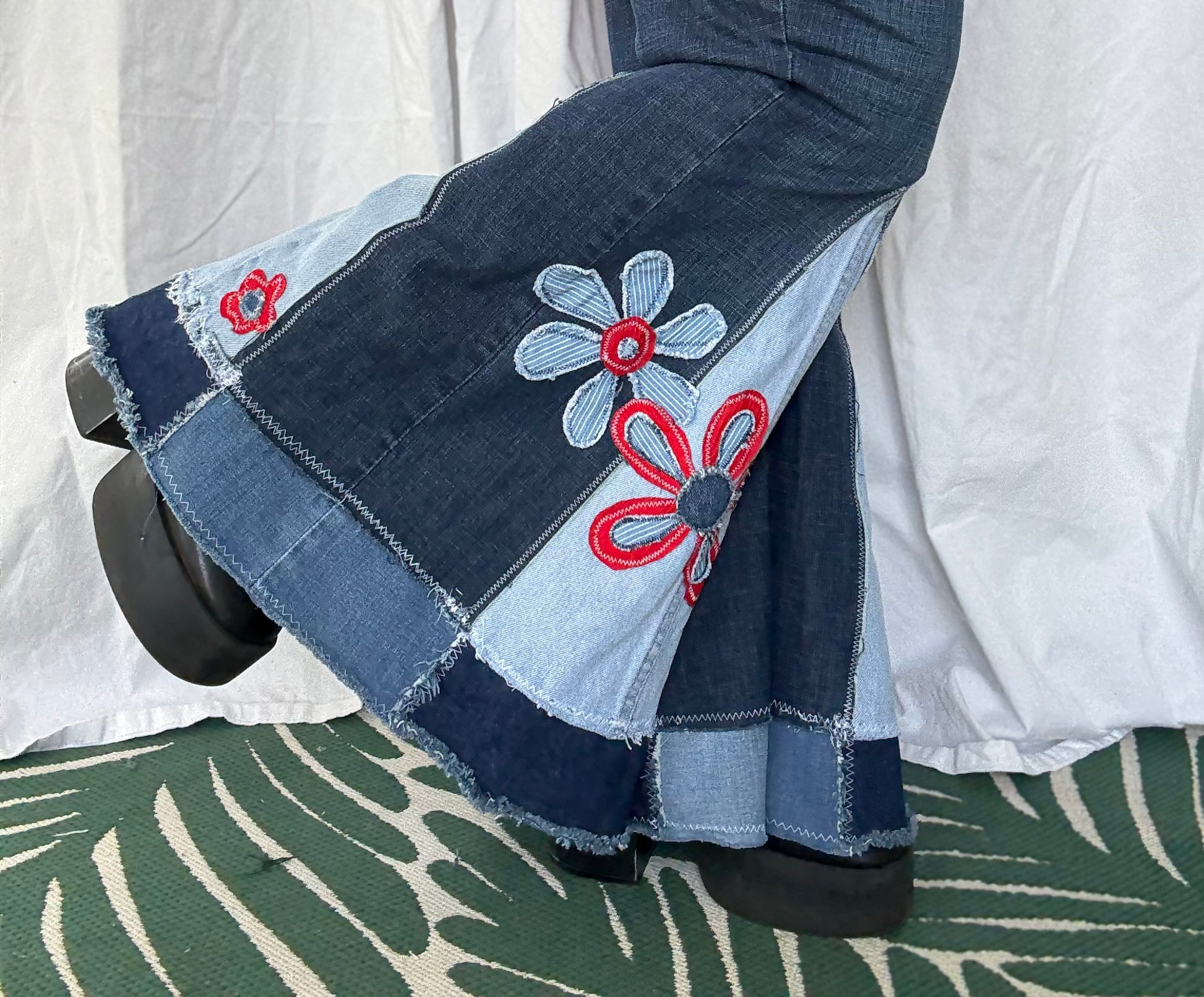 Retro Side Flower Bell Bottom Jeans (size 24) – Handmade Upcycled Denim