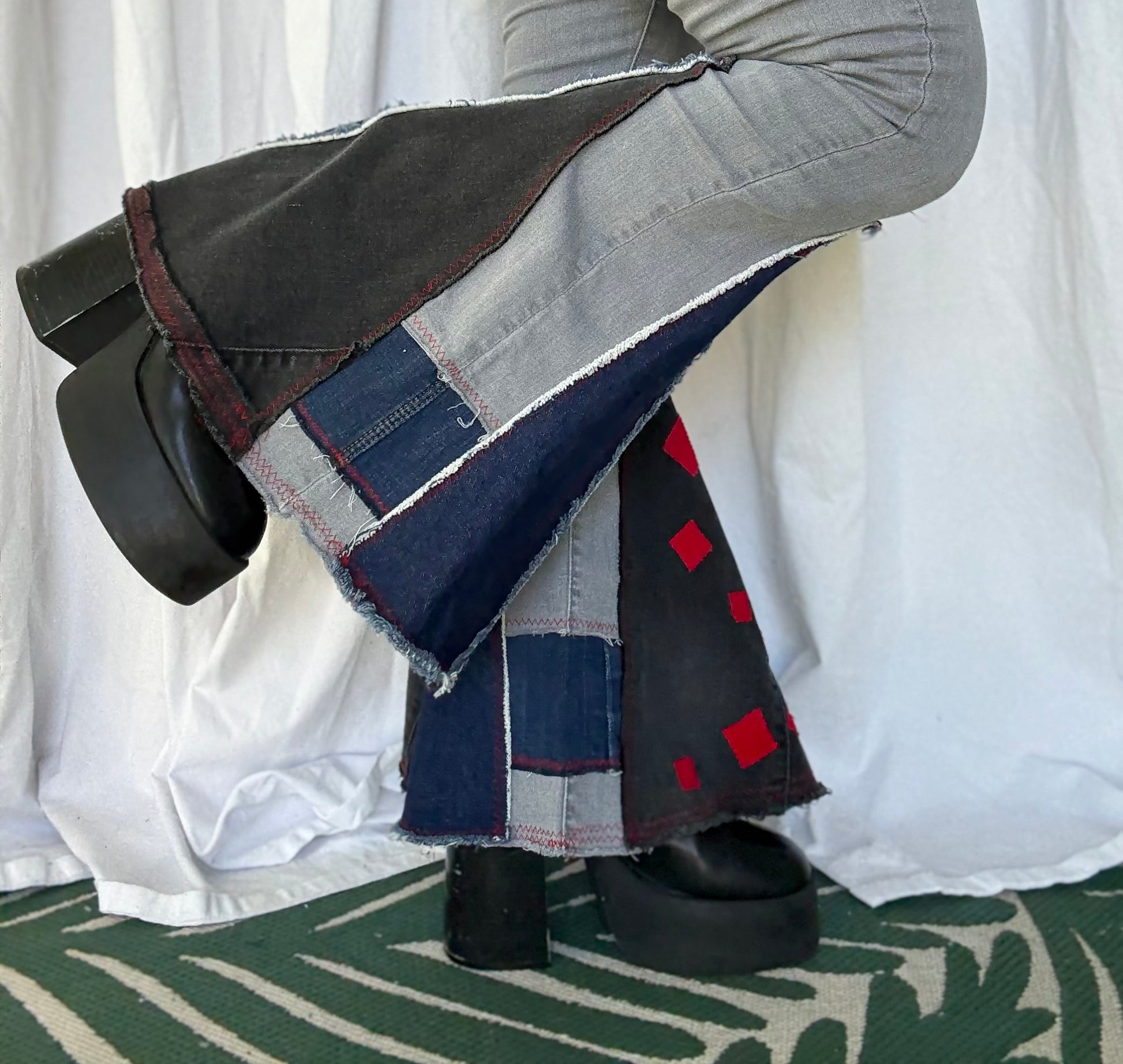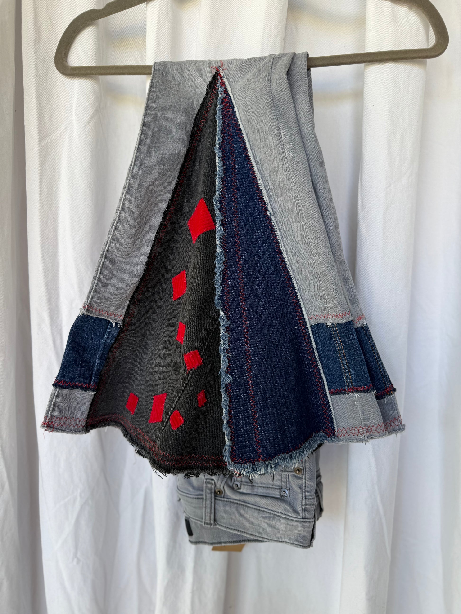 Gray Bell Bottom Jeans (size 4) – Black & Red Patchwork Flare