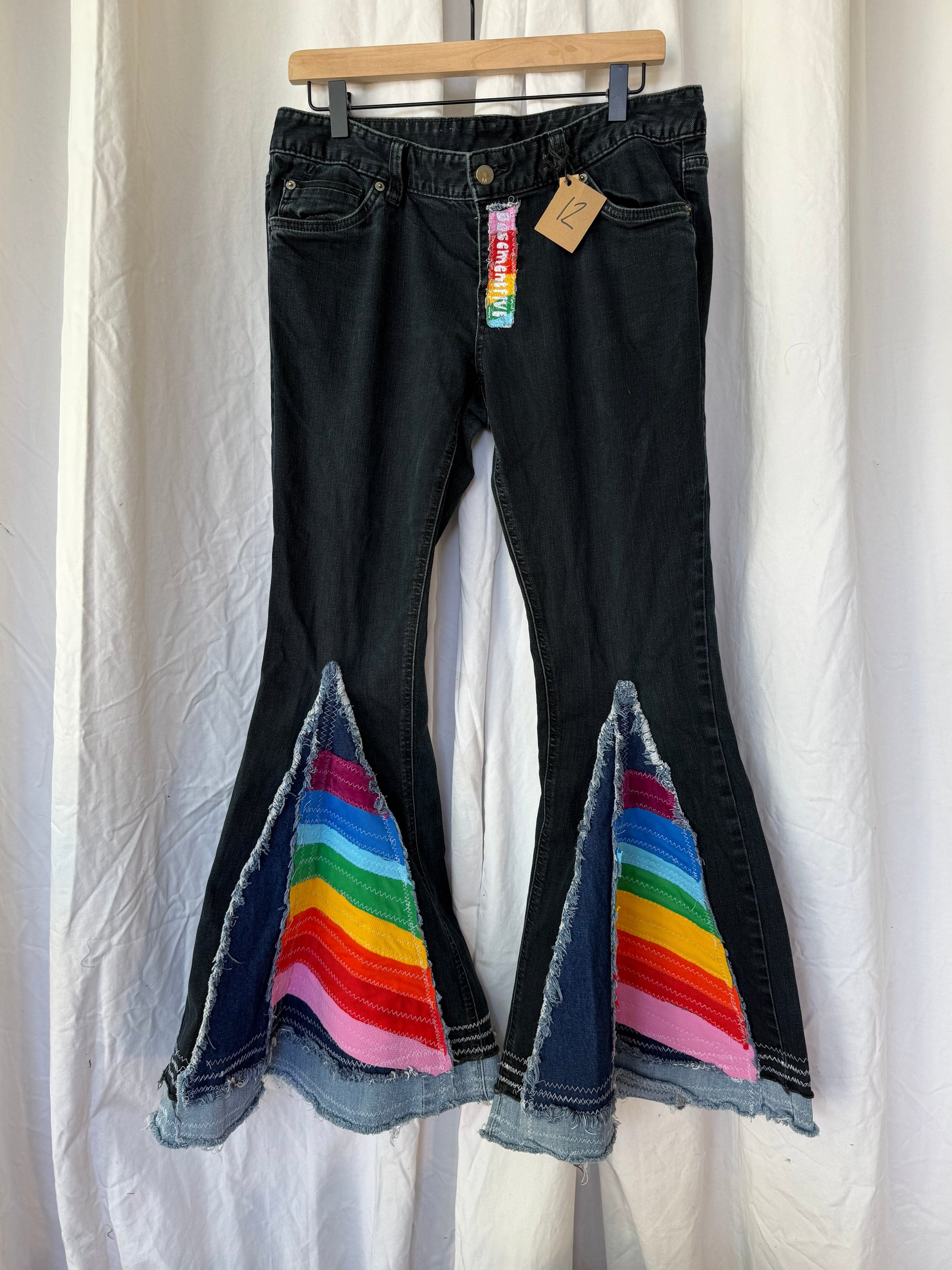 Rainbow Bell Bottom Jeans (size 12)ā Festival Ready Flare š