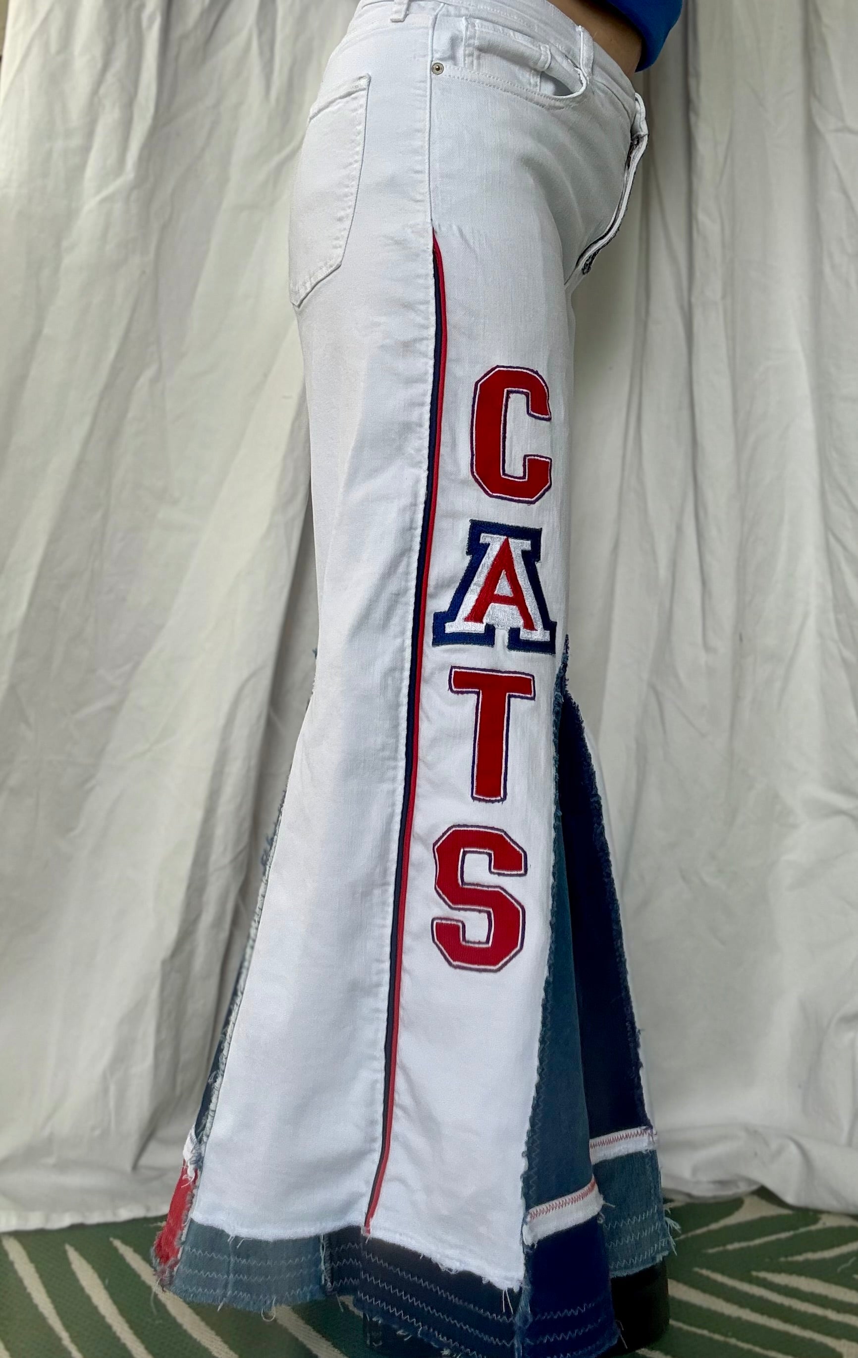 Upcycled “Wildcat Pride” Bell Bottom Jeans (size 16)